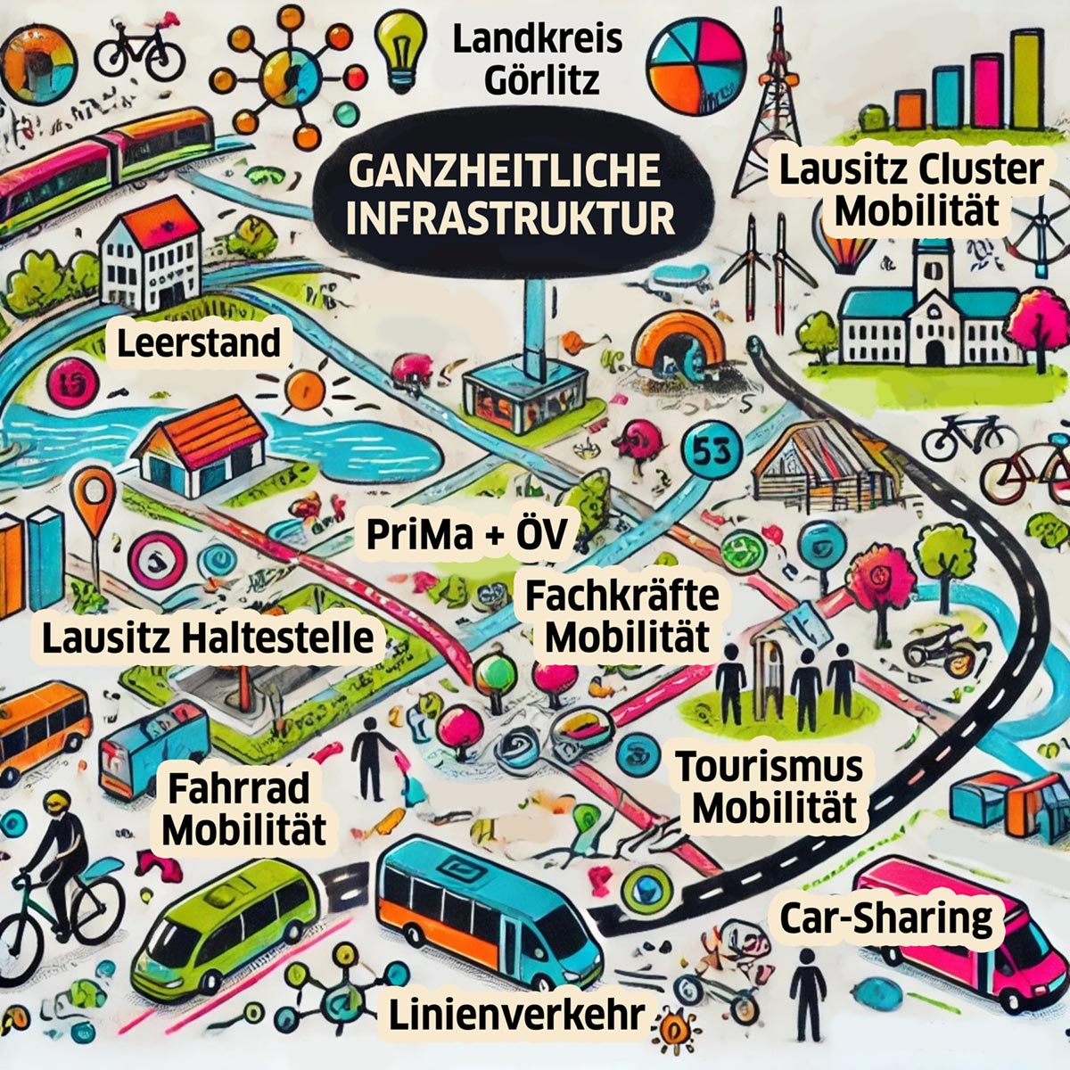 #Moderne Infrastruktur gestalten, indem wir den Ausbau nachhaltiger Verkehrssysteme und notwendiger Institutionen für Daseinsvorsorge und Wirtschaft vorantreiben und Projektideen entwickeln und umsetzen. Wir schaffen in der Lausitz moderne, leistungsfähige und lebenswerte Region.